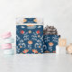 Swans,fish,flowers on a blue background. Decorativ Wrapping Paper
