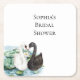 Swans Water Lilies Lake Romantic Bridal Shower Square Paper Coaster