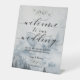 Swash Font Calligraphy Misty Winter Scene Wedding Pedestal Sign
