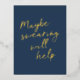 Maybe Swearing Will Help Cheeky Snarky Saying Text Gold Foil and Navy Blue Postcard