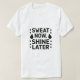 Get motivated with our 'Sweat Now, Shine Later' design, blending a clever phrase with playful graphics of sweat drops and stars to inspire perseverance and celebrate fitness achievements.