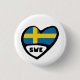 Sweden Country Code Flag Heart Button / Badge.