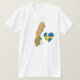A heart shaped Swedish flag is placed next to a relief map of Sweden on this distinctively patriotic t-shirt.