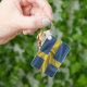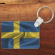 Keychain with the flag of Sweden in wavy fabric style design. This design features the Swedish flag colours and design with a beautiful waving material textured effect. This flag design is a great way to show you are proud to be from Sweden.