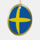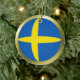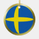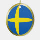 Both sides of this ornament feature the flag of Sweden morphed into a circle with a golden rim. Simple Swedish decoration for your home.