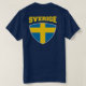 The national flag of Sweden is infused into a shield shape with the country translation written above the image.