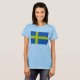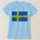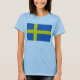 The front of this t-shirt boldly displays the Swedish flag with its distinctive yellow offset cross on a blue background. This is matched at the back by an attractive map of Sweden.