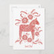 A traditional Swedish folk art Dala Horse in red and white. Original art by Nic Squirrell. Change the God Jul greeting to customise.