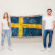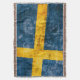 This item has a distressed style Swedish flag at a slight angle. The flag of Sweden is a gold Scandinavian cross on a blue field that extends to the edges of the flag.