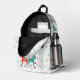 This printed has a Swedish folk dala horse design with matching folk art flowers in Sweden's flag colours of teal and red on white background. At the top are a row of matching smaller dala animals and flowers. Personalise this with your name and can make the background flower pattern on this backpack smaller or larger.