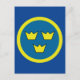 Three Crowns (Swedish: Tre Kronor) is a national emblem of Sweden, present in the Coat of Arms of the Realm of Sweden, and composed by three yellow or gilded coronets ordered two above and one below, placed on a blue background. The emblem is often used as a symbol of authority by the Swedish government and by Swedish embassies around the world, but also appears in other less formal contexts, such as the Swedish national men's ice hockey team, who wear the symbol on their shirts and hence are called "Three Crowns" , and atop the Stockholm City Hall built 1911-1923. The Three Crowns are also used as the roundel on military aircraft of the Swedish Air Force and as a sign on Swedish military equipment in general.
