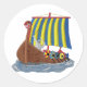 Blue and Yellow sails fly above this viking vessel. Shields adorn the side. Sea monster serves at the helm.