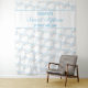 Sweet 15 birthday party backdrop in baby blue and silver - perfect for photobooth, welcome sign or just as a large piece of party decor to help set the theme. The design has a diagonal, step and repeat, tiled pattern of Sweet Fifteen, which is lettered in swirly calligraphy and elegant typography. The template is ready for you to add the birthday girl's name and event date.