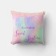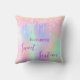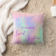 A pillow for a 16th years old girls room. A trendy rainbow, holographic background in purple, pink, rose gold and mint green. Decorated faux glitter drips, paint dripping look. The text: Sweet Sixteen is written in purple with a large modern hand lettered style script. Personalise and add a name.