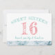 Beach party & bonfire Sweet 16 design with image of the sea accenting the bottom edge. Both sides are fully customisable for any occasion. All areas have easy to use templates.