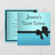 Sweet Sixteen Birthday Party Invitations. Suitable for all age birthdays and events. Fun Pretty style with Blue Gradient top half then a blue metallic tile pattern on bottom half. Featuring Black trim and Black Satin bow. Back has Tile Pattern and Gradient on top, Black Balloon with black and silver streamer. Rsvp is available upon request in similar style.