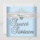 Sweet 16 Birthday Party Blue White Spots Tiara Invitation