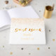 A guest book for a glamourous Sweet 16 Birthday Party. A chic white background with golden confetti sprinkle. The text: Guest Book is written with trendy faux gold letters. The name is written with a hand lettered style script. Template for your text on the spine.