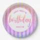 Sweet 16 birthday rainbow ombre glitter script paper plate