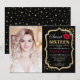 Sweet 16 Birthday Red Kiss Gold Black Photo Invitation