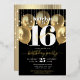 Sweet 16 Birthday Script Balloons Black Real Gold