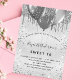 For an elegant Sweet 16, 16th birthday. A faux silver metallic looking background. Decorated with faux glitter drips, paint dripping look and balloons. Personalise and add a name, age and party details. The name is written with a hand lettered style script
