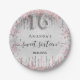 Sweet 16 birthday silver pink metal glitter script paper plate