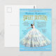 These beautiful Sweet 16 party invite postcards include a gorgeous watercolor dancer in a long gown striking a pose with her arms. The background is royal blue fading into light teal with a border of gold-coloured speckles / confetti. The dancer's white-grey gown has a slight glittery, glowing look. The words "Sweet Sixteen" are made in gold, and the rest of the text can be easily changed using the templates. (If you would like the words "Sweet Sixteen" changed, please contact FancyCelebration store). You can also make more detailed changes to the rest of the text by selecting customise / personalise further.
