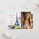 Sweet 16 Birthday Watercolor Floral Eiffel Photo Invitation