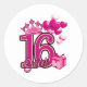 Fun Sweet Sixteen Birthday Sticker design featuring crown, balloons, gift and numbers/text Sweet Sixteen. Stickers for anyone celebrating a sixteenth birthday!