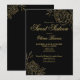 Sweet 16 Black and Gold Line Art Flowers Floral Invitation