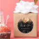 A chic black background. Decorated with dark gold faux glitter drips, paint dripping look, glitter dust and balloons. Personalise and add a name.
