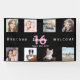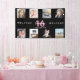 Welcome to a 16th birthday party for a girl, celebrating her life with a collage of 8 of your own photos. Photo of family, friends, pets, vacations. Templates for a name, age 16 and a date. With the text: Welcome (x2) White and pink coloured letters. Elegant black background.