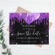 A girly and trendy Save the Date for a Sweet 16, 16th birthday party. A black background decorated with purple faux glitter drips, sparkles, and balloons. Personalise and add a date and name/age. The text: Save the Date is written with a large trendy hand lettered style script.