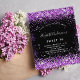 A modern, stylish and glamourous invitation for a Sweet 16, 16th birthday party. A black background with purple faux glitter dust. The name is written with a modern hand lettered style script. Personalise and add your party details.