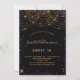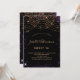 For an elegant Sweet 16, 16th birthday. A stylish black background. Decorated with purple faux gold glitter dust and a golden light strings. Personalize and add a name, age and party details. The name is written with a hand lettered style script
