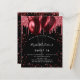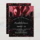 For an elegant Sweet 16, 16th birthday. A stylish black background. Decorated with red faux glitter and balloons. Personalise and add a name, age and party details. The name is written with a hand lettered style script