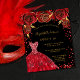 A modern, stylish and glamourous invitation for a Sweet 16, 16th birthday party. A black background with sparkles, a red dress and red roses, florals. The name is written with a modern hand lettered style script. Personalise and add your party details.