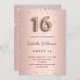 A modern, stylish and glamourous invitation for a Sweet 16, 16th birthday party. A faux rose gold metallic looking background with pink diamonds. The name is written with a modern dark rose gold coloured hand lettered style script. Personalise and add your party details. Number 16 is written with a balloon style font, script.