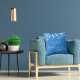 A pillow for a Sweet 16, 16th years old girls room. A bright blue background decorated with white stars. The text: Sweet Sixteen is written in white with a large modern hand lettered style script. Personalise and add a name.