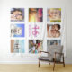 For a Sweet 16, 16th birthday, celebrating her life with a collage of 8 of your photos of her friends, family, interest or pets. Personalise and add her name, age 16 and a date. Date of birth or the date of the birthday party. Pink and purple coloured letters. A chic white background colour. Use as party wall decor, welcome banner and as photo booth, photo backdrop.