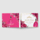 Cherish your special day for the years to come with a customised guest book. Featuring a quince girl in a fuchsia pink gown, pretty fuchsia / hot pink flowers and pink and gold butterflies. Personalise it with your details easily and quickly, simply press the customise it button to further re-arrange and format the style and placement of the text. Perfect for quinceanera, Sweet 16 and more occasions! (c) The Happy Cat Studio