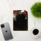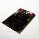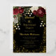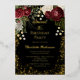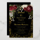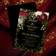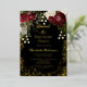 Elegant and classy dark red and burgundy floral roses with seed pearls on a splatter frame "Sweet 16" Birthday Party design by Holiday Hearts Designs. All text is real gold foil and the splatter frame is a combination of gold foil and gold-toned gradient. Seed pearls are faux printed. Black background on front and back.