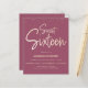 This elegant and festive 4.5" x 5.6" Sweet 16 Party Paper Sheet Invitation features the words "Sweet Sixteen" in a modern, gold (simulated foil) font. The background is pink (eggplant, magenta), but can be changed to any colour of your choice. Party details can be easily customised for your special event. A beautiful, simple, and inexpensive way to invite guests to celebrate a 16th birthday. Envelopes sold separately as an ad-on.