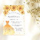 A modern, stylish and glamourous invitation for a Sweet 16, 16th birthday party. A white background on the front with faux gold glitter dust, a dress and roses, florals. The name is written with a modern hand lettered style script. Personalise and add your party details.