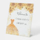 Sweet 16 gold white dress florals party welcome pedestal sign