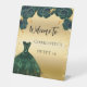 Sweet 16 green gold dress flowers welcome pedestal sign