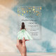 A clear, transparent background. Decorated with golden stars and a girl wearing a green dress. Personalise and add a name and details.