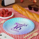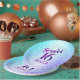 “Happy Sweet 16”. Celebrate her birthday with this groovy boho retro, personalised paper plate. Fun, trendy, bold purple and navy blue typography with modern sans serif typography overlay a background of pop light turquoise and purple ombre gradient rays with white dots. Personalise the custom text with your daughter’s name. Your choice of 2 sizes: 7” or 9”, plus square and bowl options. This stylish paper plate is guaranteed to set just the right tone for her special celebration! Matching invites, napkins, banners and other birthday goodies are also available in this cool and unique collection.