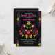 Sweet 16 Mexican Party Flowers Black Birthday Invitation